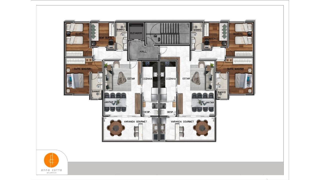 Os apartamentos possuem plantas amplas entre 108 m² e 113 m², com um projeto inteligente que oferece: