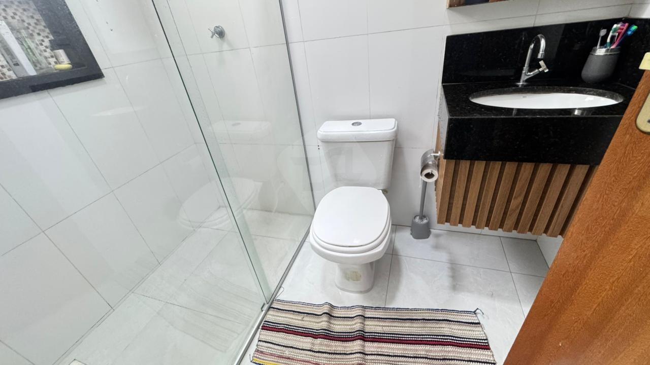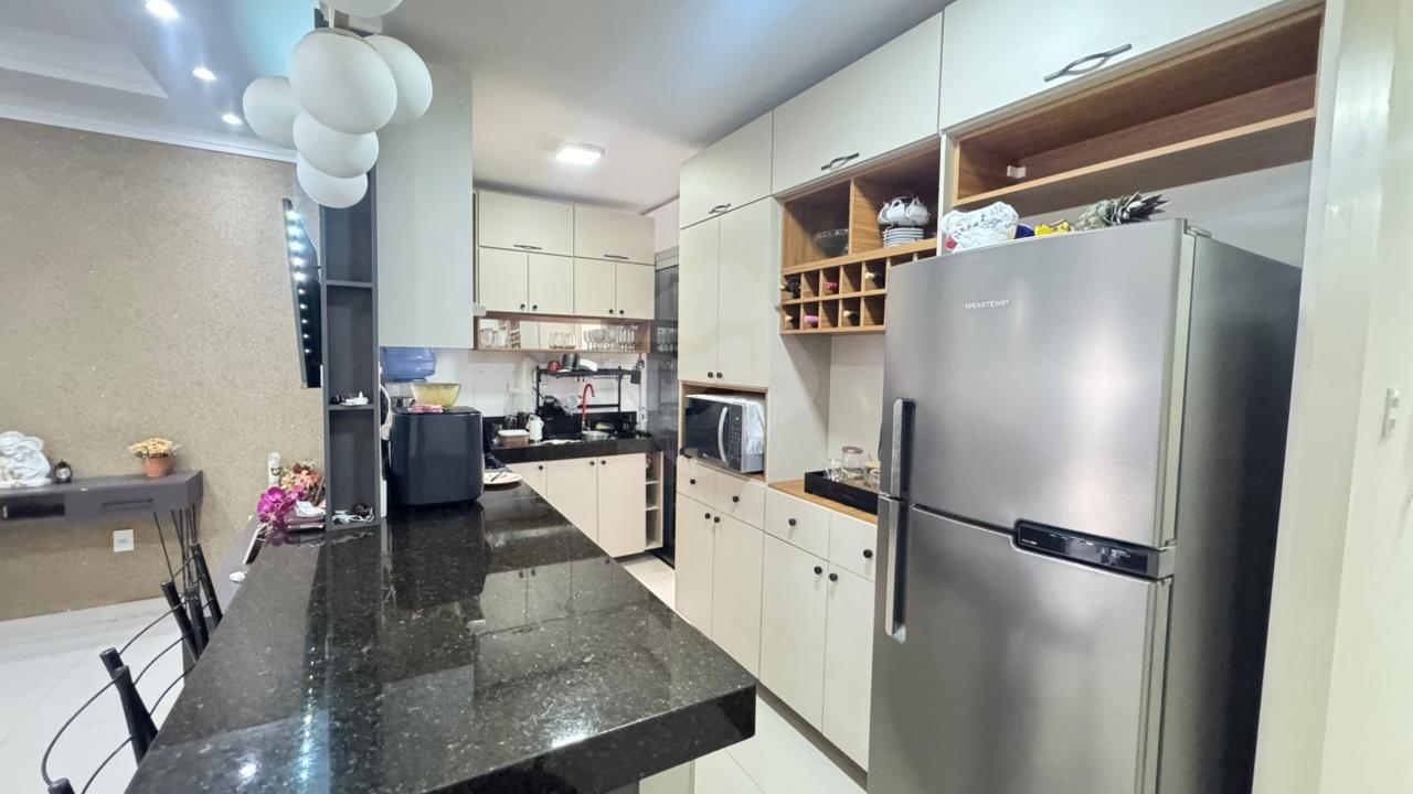 Com 2 quatros sendo 1 suíte, sala, cozinha com Planejados, banheiro social, área da serviço e garagem.