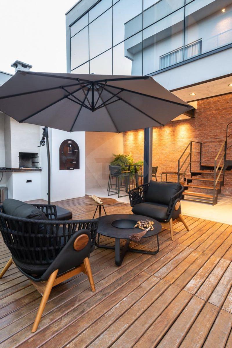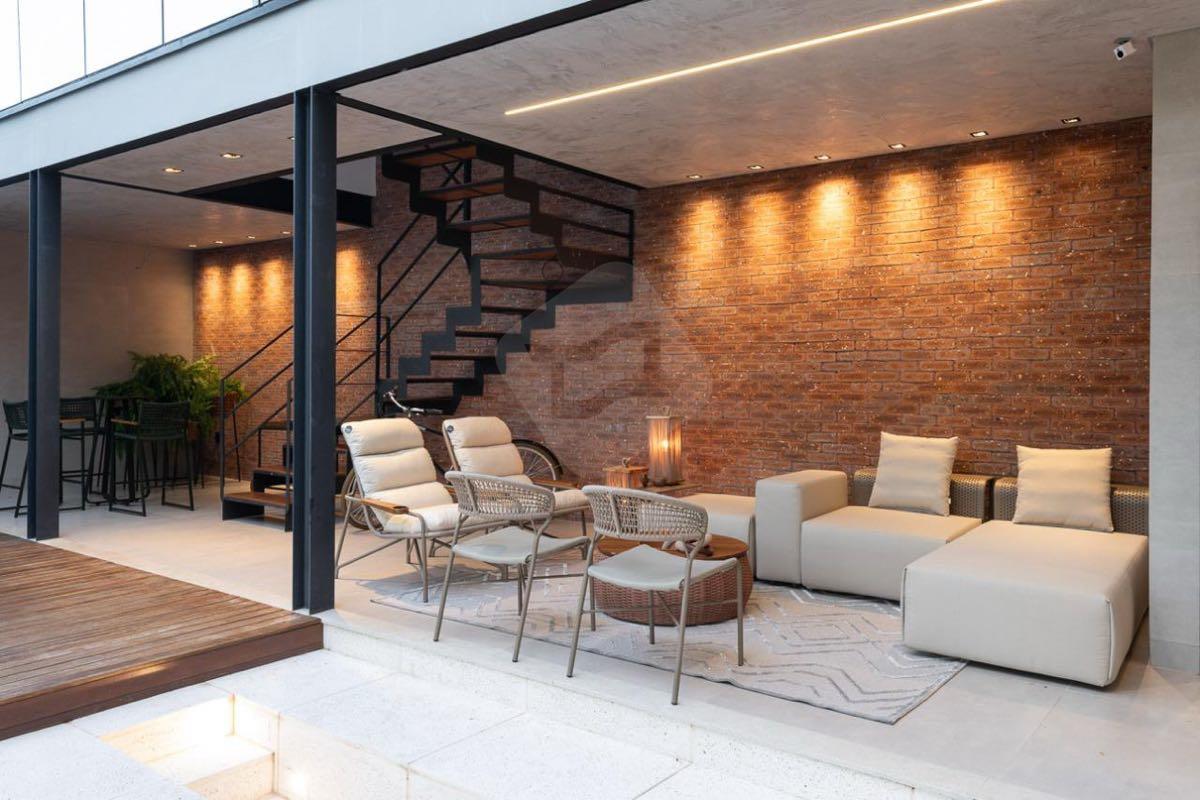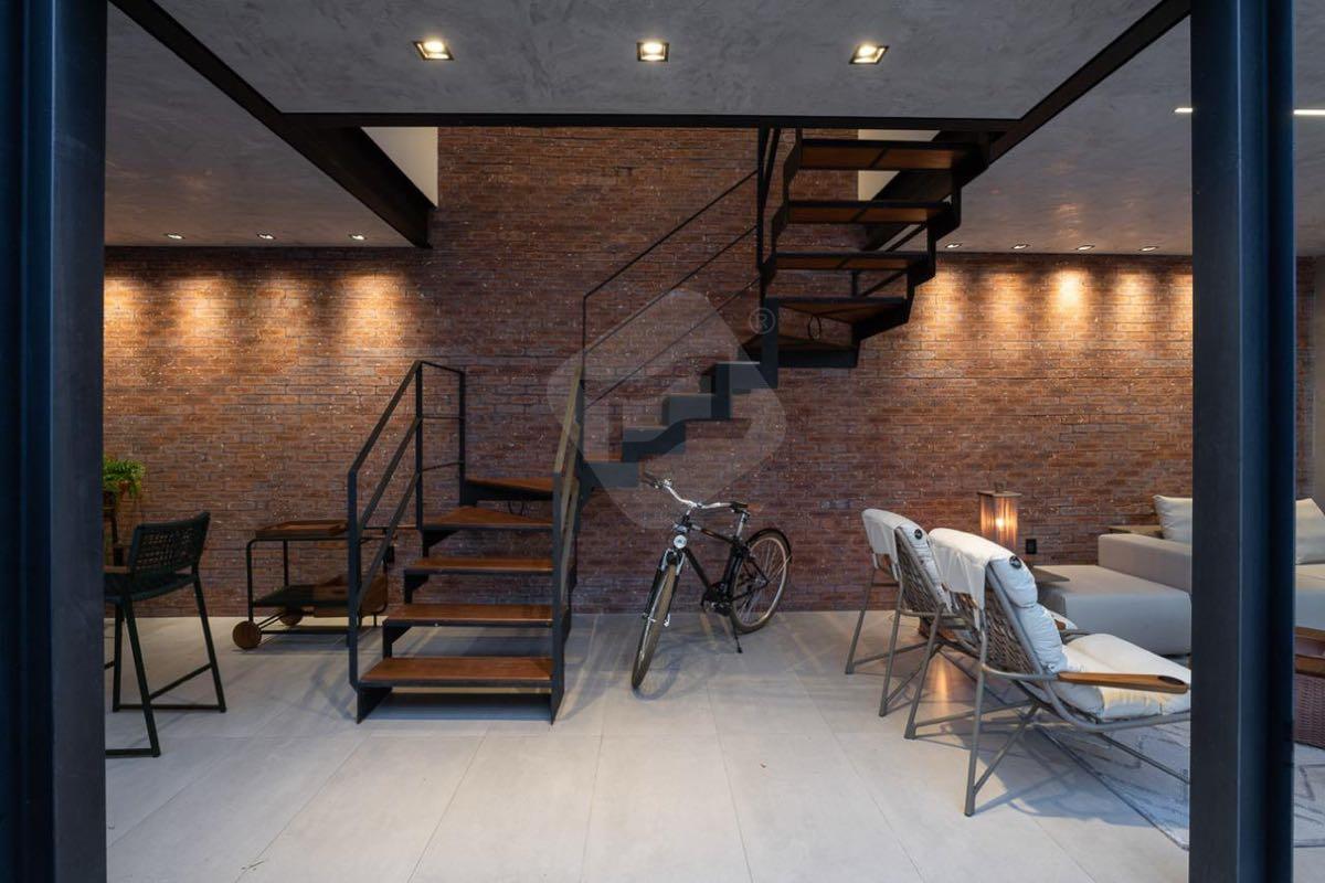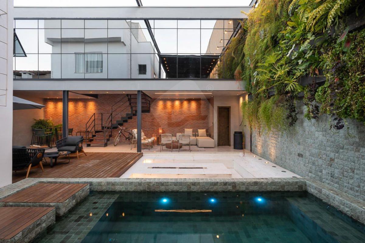 Garagem, área gramada, academia de crossfit, jardim vertical, piscina em pedra Hijau, lareira, lavabo e área gourmet com churrasqueira e forno de pizza.